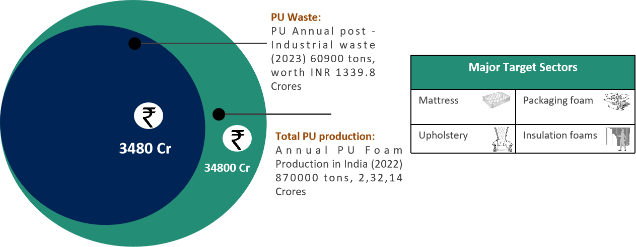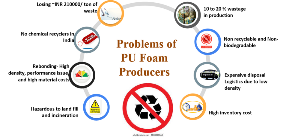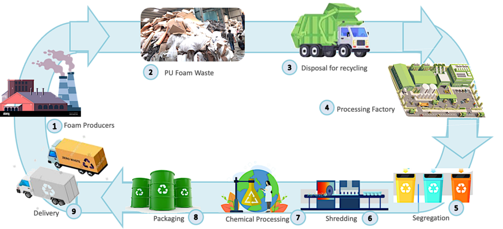 - Collect PU foam waste from post-consumer (furniture, mattresses, etc.) or post-industrial sources.